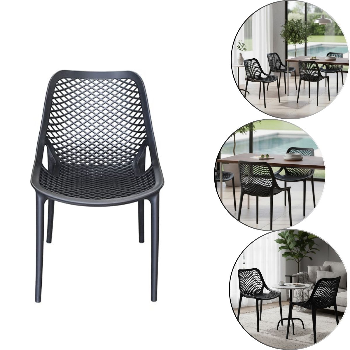 A Cadeira Mosaico Preta é a escolha ideal para quem busca praticidade, resistência e um visual discreto que combina com qualquer ambiente. Seu design clássico se adapta facilmente a cozinhas, áreas externas, varandas, bares ou espaços comerciais, entregando funcionalidade no uso diário.