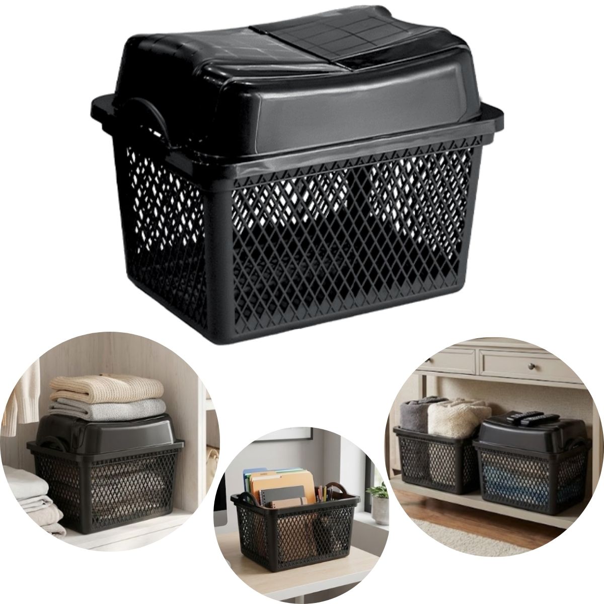 A tampa articulada facilita o uso no dia a dia (nada de ficar lutando com a tampa como se fosse um boss final), enquanto o corpo telado garante ventilação, ideal para roupas, brinquedos, materiais diversos ou qualquer tralha que você finge que vai organizar amanhã.