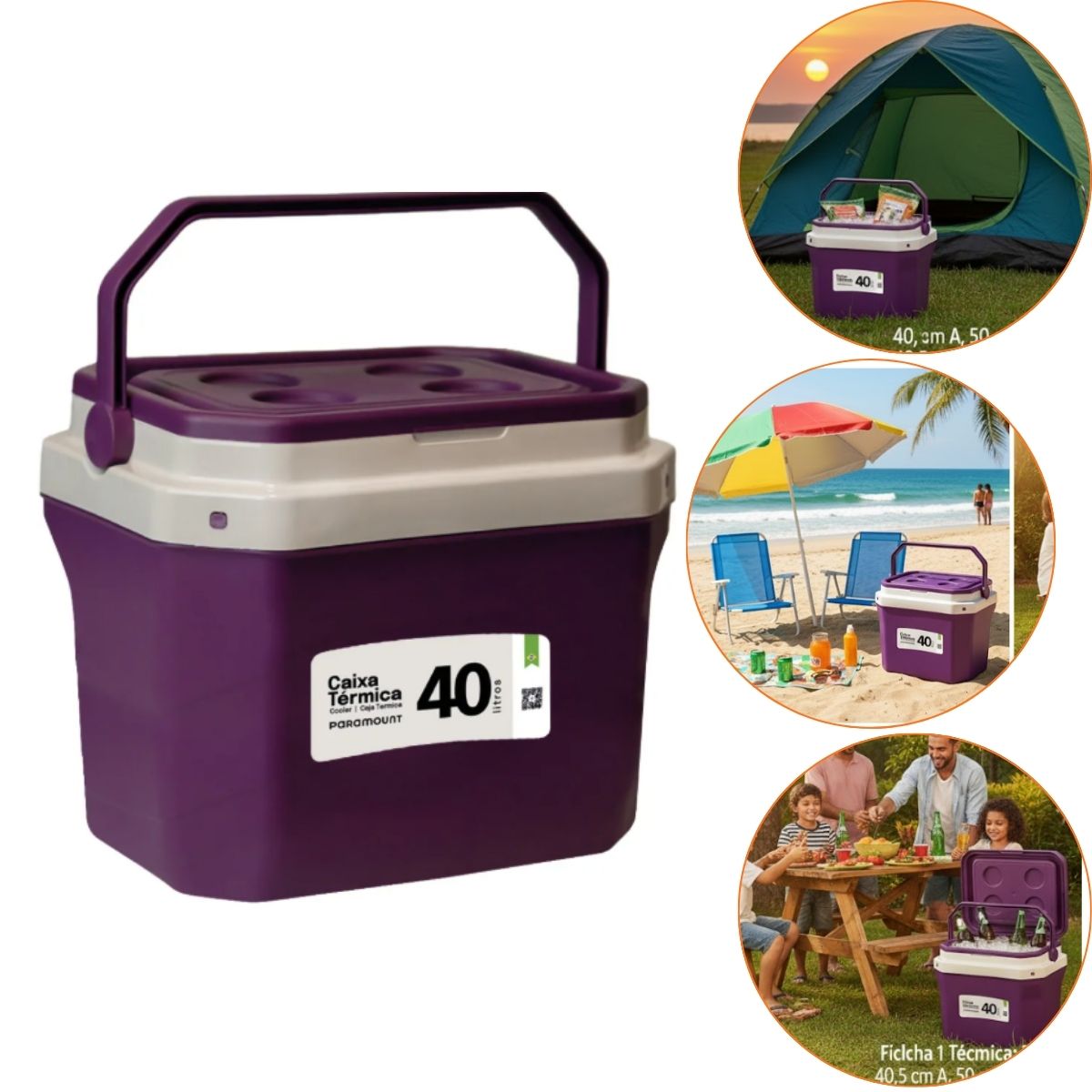 A Caixa Térmica 40 Litros é ideal para manter bebidas e alimentos conservados por mais tempo em passeios, viagens, praia, camping ou eventos. Com excelente capacidade interna, comporta garrafas, latas e alimentos com praticidade, sendo uma ótima escolha tanto para uso doméstico quanto profissional.
