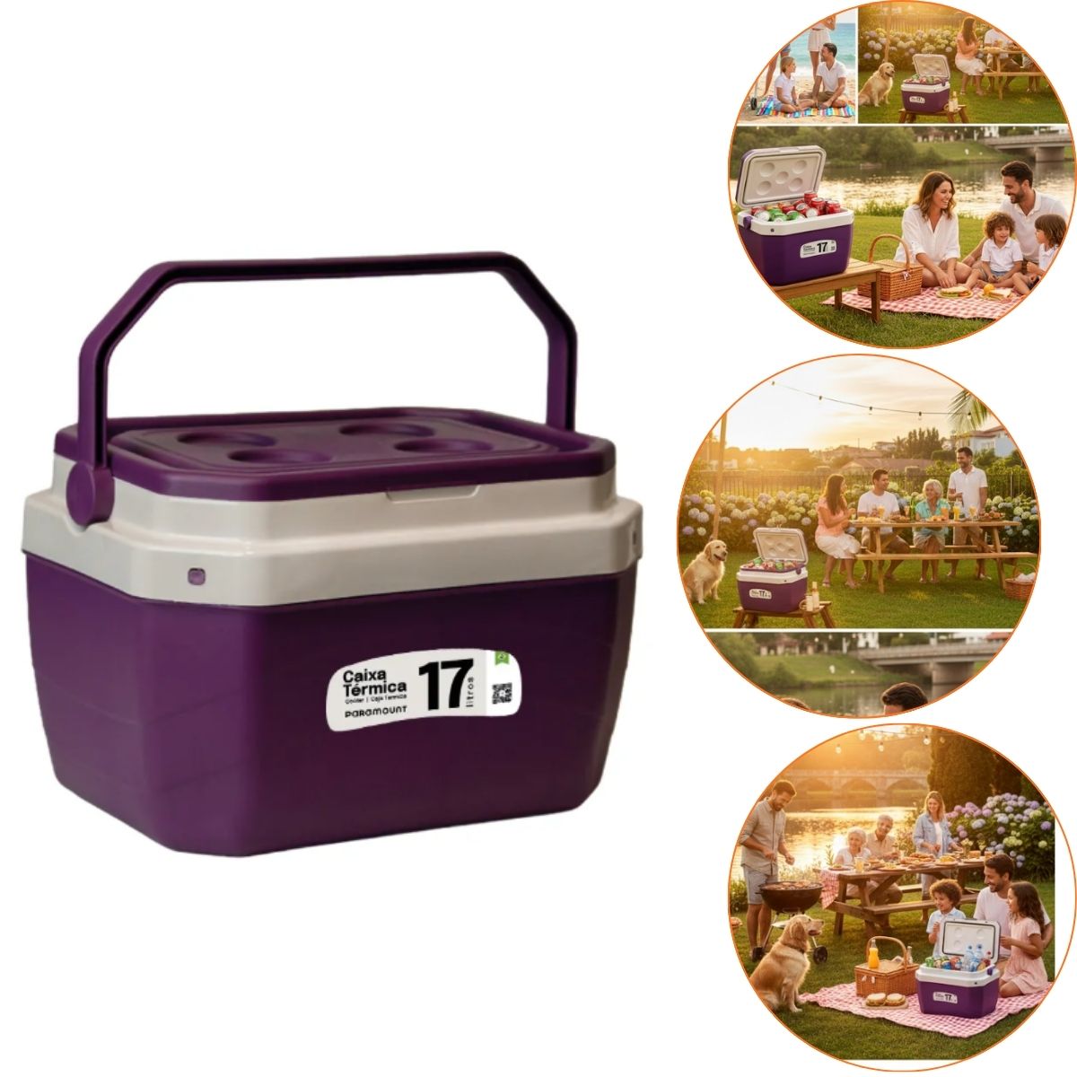 A Caixa Térmica de 17 litros é a escolha ideal para manter bebidas e alimentos conservados por mais tempo em passeios, viagens, praia, camping ou no dia a dia. Com design funcional e cor chumbo, combina praticidade com um visual discreto e moderno.