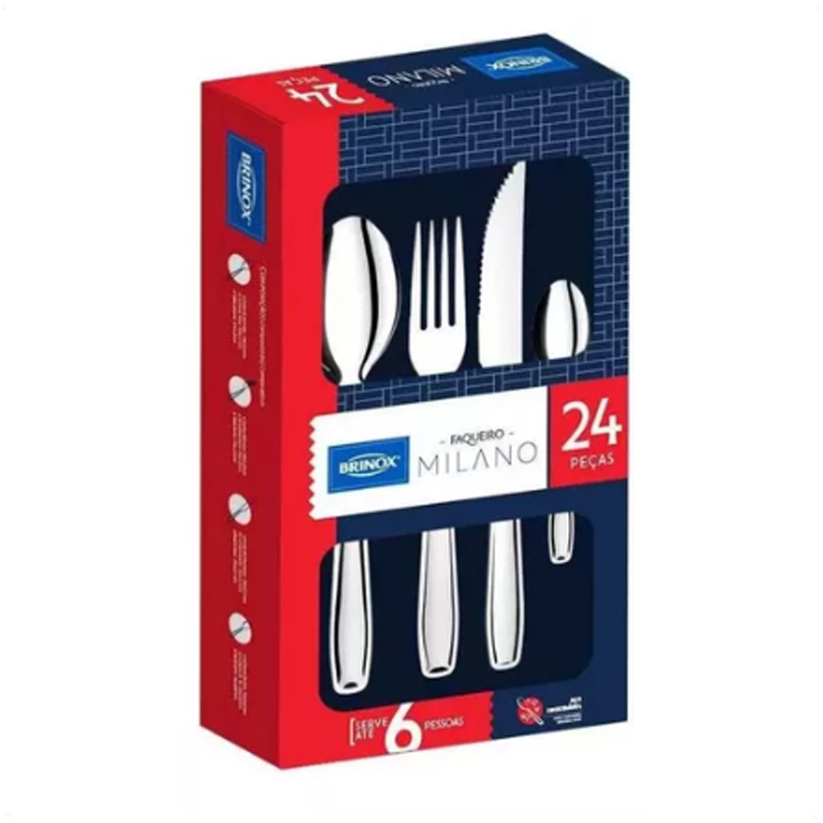 Faqueiro Milano 24 Peças Aço Inox Jogo Talheres Cor Prateado