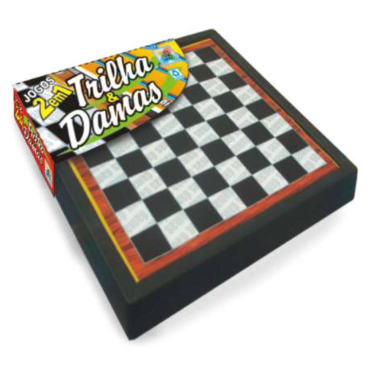 Um tabuleiro com dois jogos e 24 peças em material plástico.