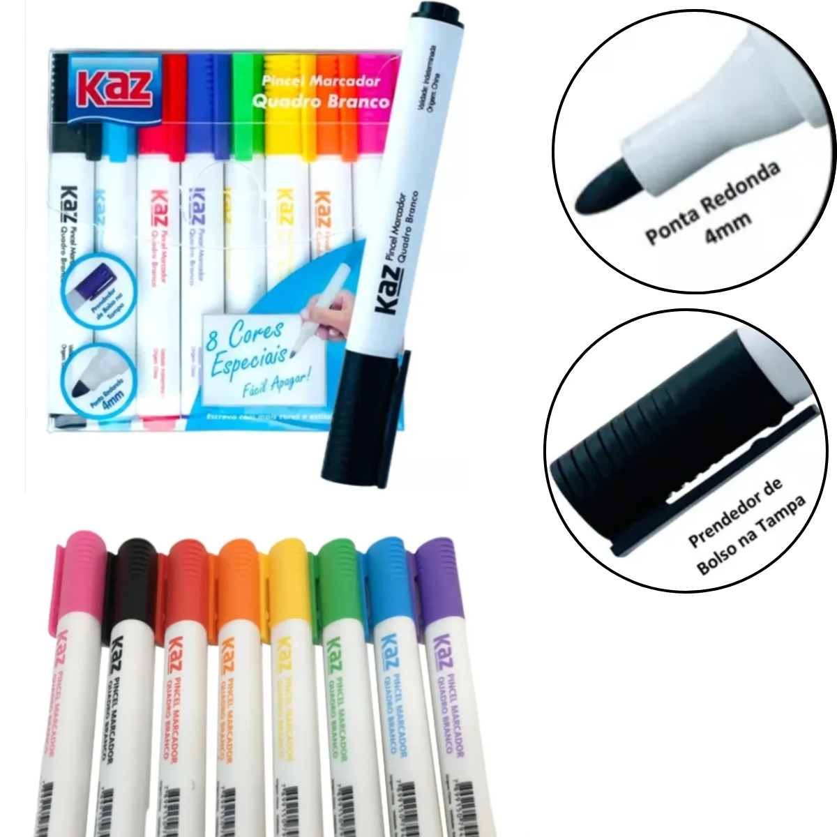 Título: Marcadores para Quadro Branco Kaz, Kit 8 Cores Vibrantes, KZ2016