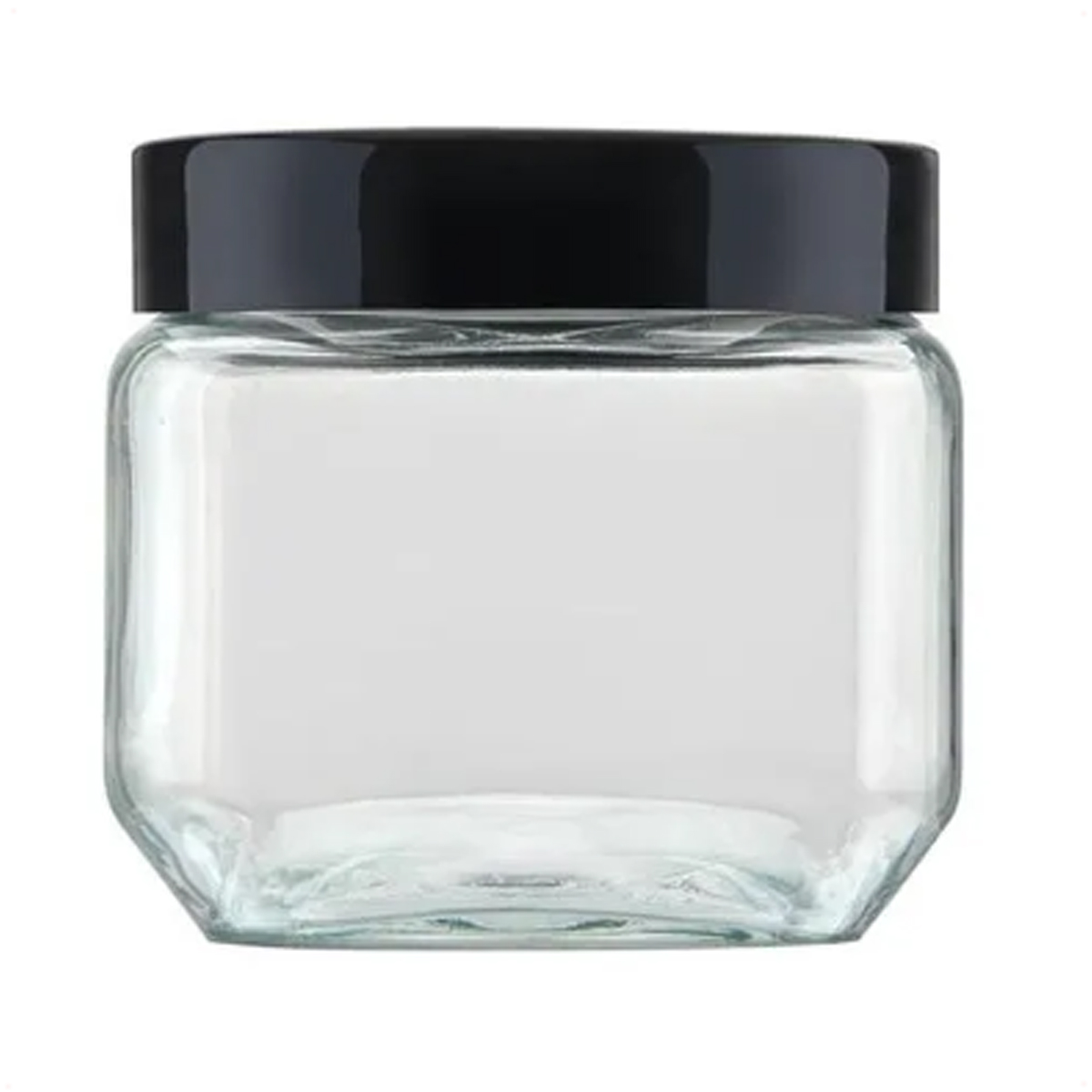 Pote de Vidro Liso Quadrado 800ML Com Tampa Preta Rosqueável