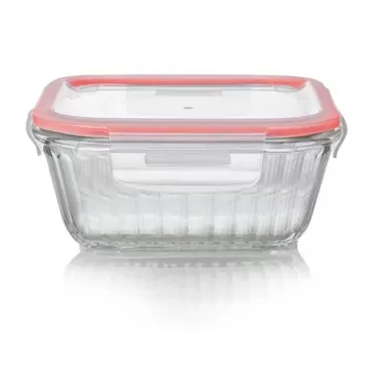Pote Hermético Canelado Vidro Quadrado 520ml Com Tampa