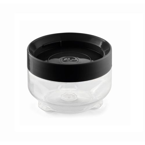 Pote com tampa com rosca que conecta 1 pote no outro em apenas 1 giro.