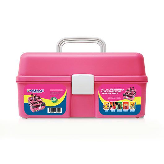 Maleta Rosa com 2 Bandejas Articuladas Primeiros Socorros, Medicamentos e Maquiagens