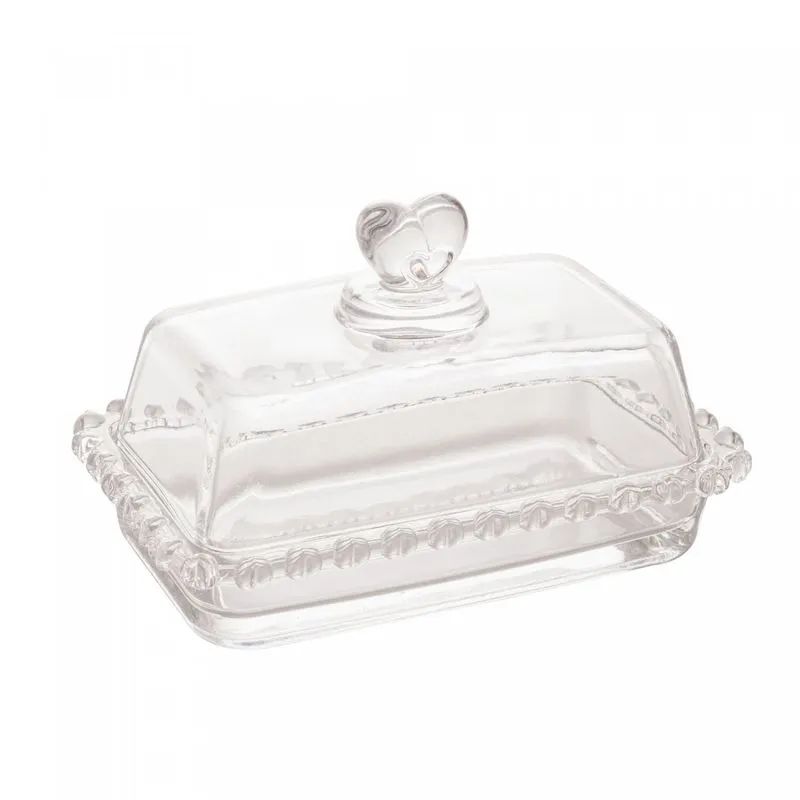Manteigueira de Cristal com Tampa Coração 17cm x 10,5cm x 10cm - Lyor
