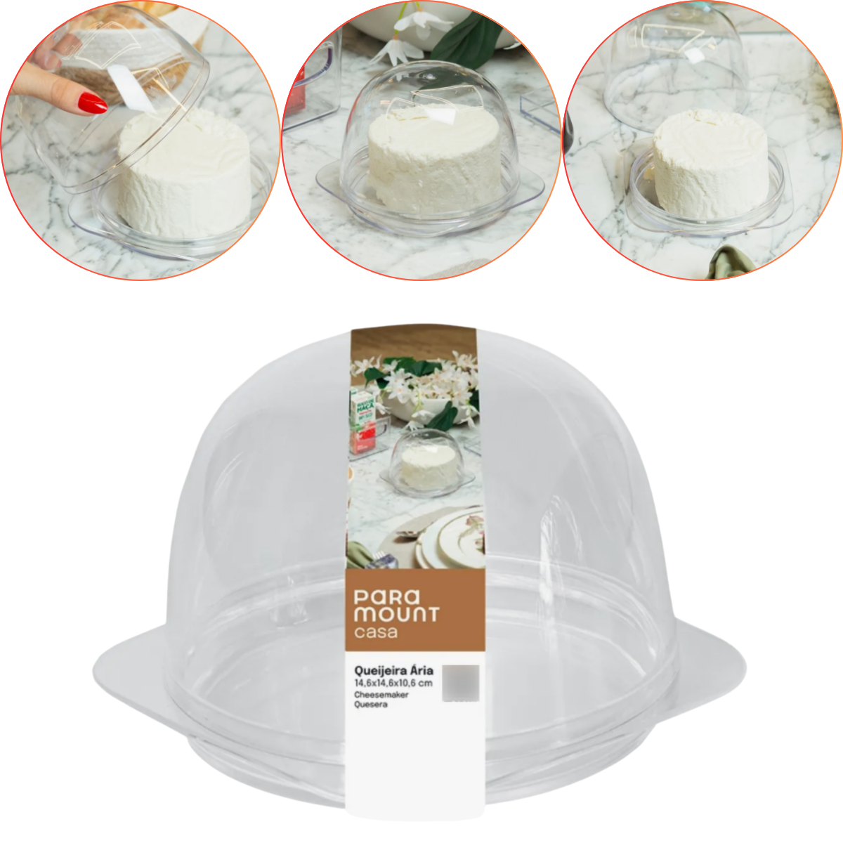 Sua tampa removível garante fechamento seguro, mantendo os queijos sempre frescos e protegidos.