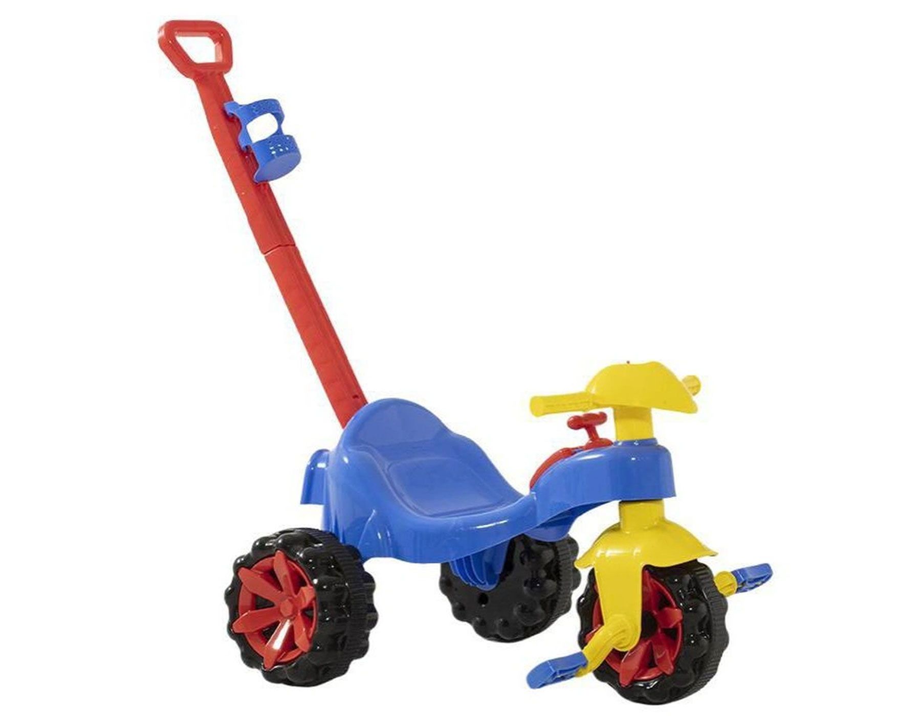 Mais do que garantir a diversão das crianças, o Triciclo Toy Kids permite que os pequenos exercitem a criatividade e a curiosidade. É um brinquedo desenvolvido em produto de alta qualidade e contra defeitos de fabricação. É feito nas cores azul, vermelho, amarelo e preto. Possui haste, que auxilia os adultos a conduzirem a criança durante o passeio. É recomendado para crianças de até 15 kgs.